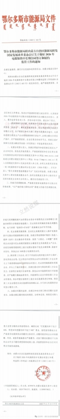 鄂尔多斯能源局2026年电煤保供长协合同文件
